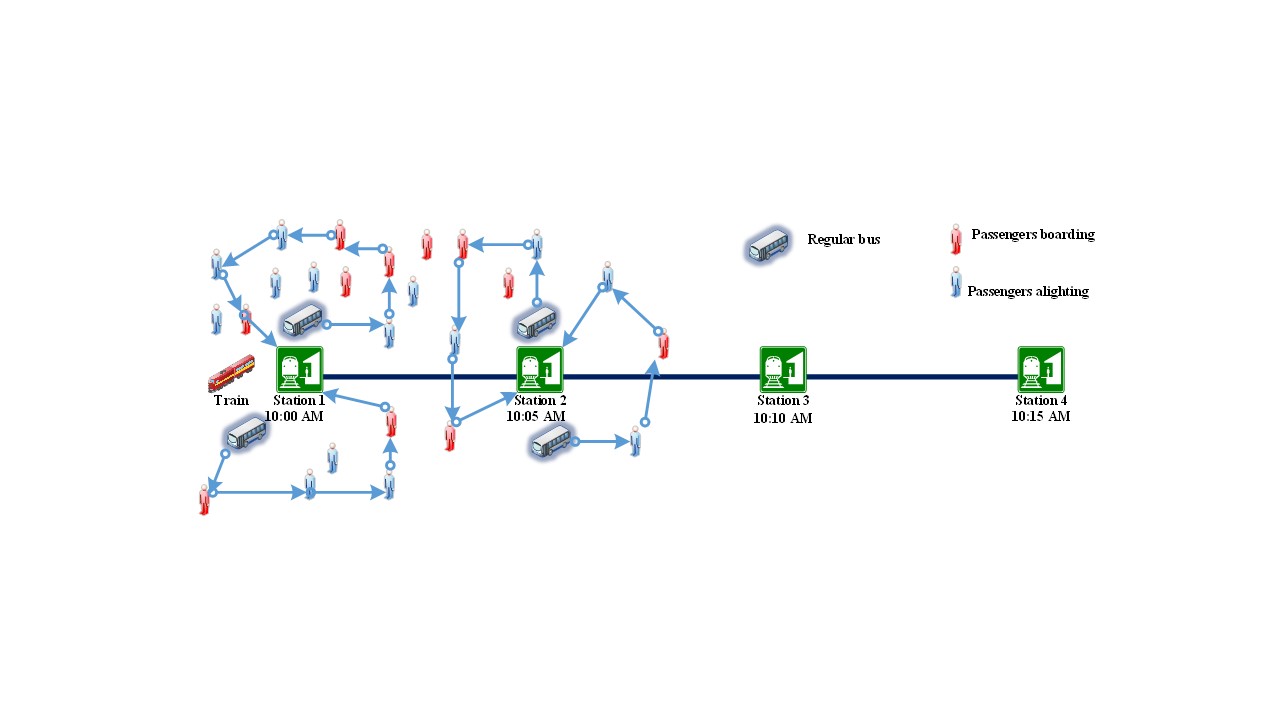 | dc.description.abstract | Although demand responsive feeder bus operation is possible with human-driven vehicles, it has not been very popular and mostly available as a special service because of the high operating costs due to the intensive labor costs as well as advanced real-time information technology and complicated operation. However, once automated vehicles become available, small-sized flexible door-to-door feeder bus operation will become more realistic, thanks to recent technological advances and business innovations by the transportation network companies (TNCs). So, preparing for the automated flexible feeder service is necessary to catch the rapid improvement of automated vehicle technology. Therefore, this research developed an algorithm for the optimal flexible feeder bus routing, which considers relocation of buses for multi-stations and multi-trains, using a simulated annealing (SA) algorithm for future automated vehicle operation. An example was developed and tested to demonstrate the developed algorithm. The algorithm successfully handled relocating the buses when the optimal bus routings were not feasible with the available buses at certain stations. Furthermore, the developed algorithm limited the maximum Degree of Circuity for each passenger while minimizing total cost, including total vehicle operating costs and total passenger in-vehicle travel time costs. Unlike fixed route mass transit, small vehicle demand responsive service uses flexible routing, which means lower unit operating costs not only decrease total operating costs and total costs but also can affect routing and impact network characteristics. In the second part of this research, optimal flexible demand responsive feeder transit networks were generated with various unit transit operating costs using the developed routing optimization algorithm. Then network characteristics of those feeder networks were examined and compared. The results showed that when unit operating costs decline, total operating costs and total costs obviously decline. Furthermore, when unit operating costs decline, the average passenger travel distance and total passenger travel costs decline while the ratio of total operating costs per unit operating costs increases. That means if unit operating costs decrease, the portion of passenger travel costs in total costs increases, and the optimization process tends to reduce passenger costs more while reducing total costs. Assuming that automation of the vehicles reduces the operating costs, it will reduce total operating costs, total costs and total passenger travel costs as well. | en |