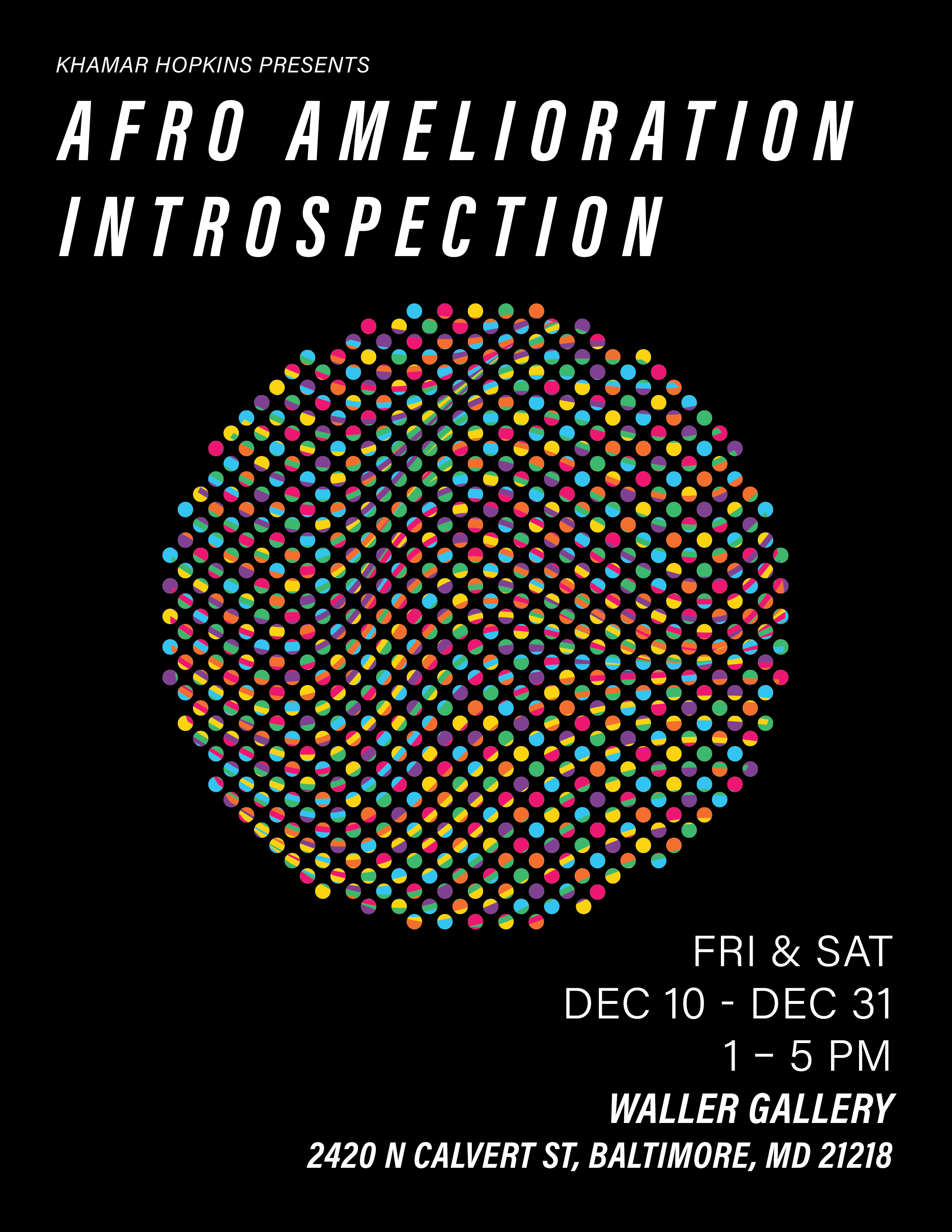 Afro Amelioration Introspection is a projected video artwork, abstract sound piece, and solo art exhibition with a digitally interactive component focused on the topic of Black mental health. Using ethnographic methods, I conducted a series of six interviews where I questioned participants on their personal feelings and narratives covering but not limited to the issues of COVID, family, police brutality, racism, intergenerational trauma, and the stigma on the subject of mental health in the Black community. I video documented the conversations and transmogrified them into nonrepresentational art using the programming language, Processing. Next, I produced a conceptual soundtrack using the audio from the interviews. Finally, I organized a synergistic art show in Baltimore to showcase the project and create a safe space for conversation on the topic. The purpose of Afro Amelioration Introspection is to reflect the type of work I want to do in the future, let the African American community know they’re not alone even if they’re struggling with addressing the concept of mental health, sustaining culture by approaching an issue that harms a community, and make the topic less taboo so people can have a better quality of life.